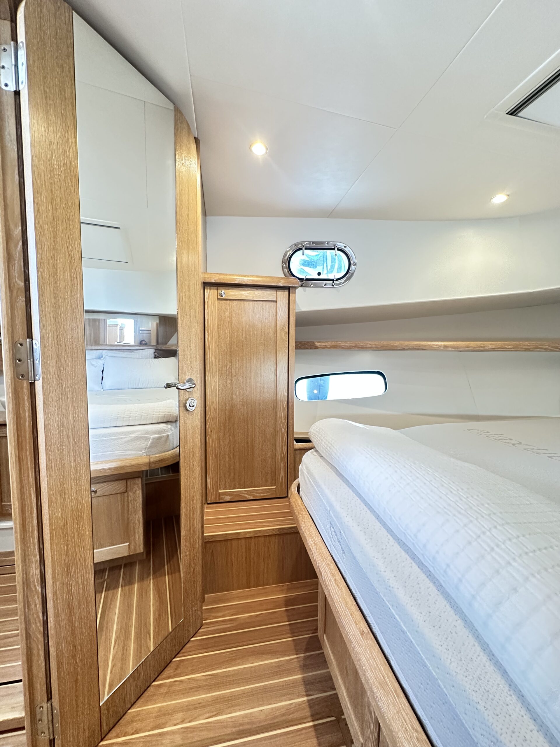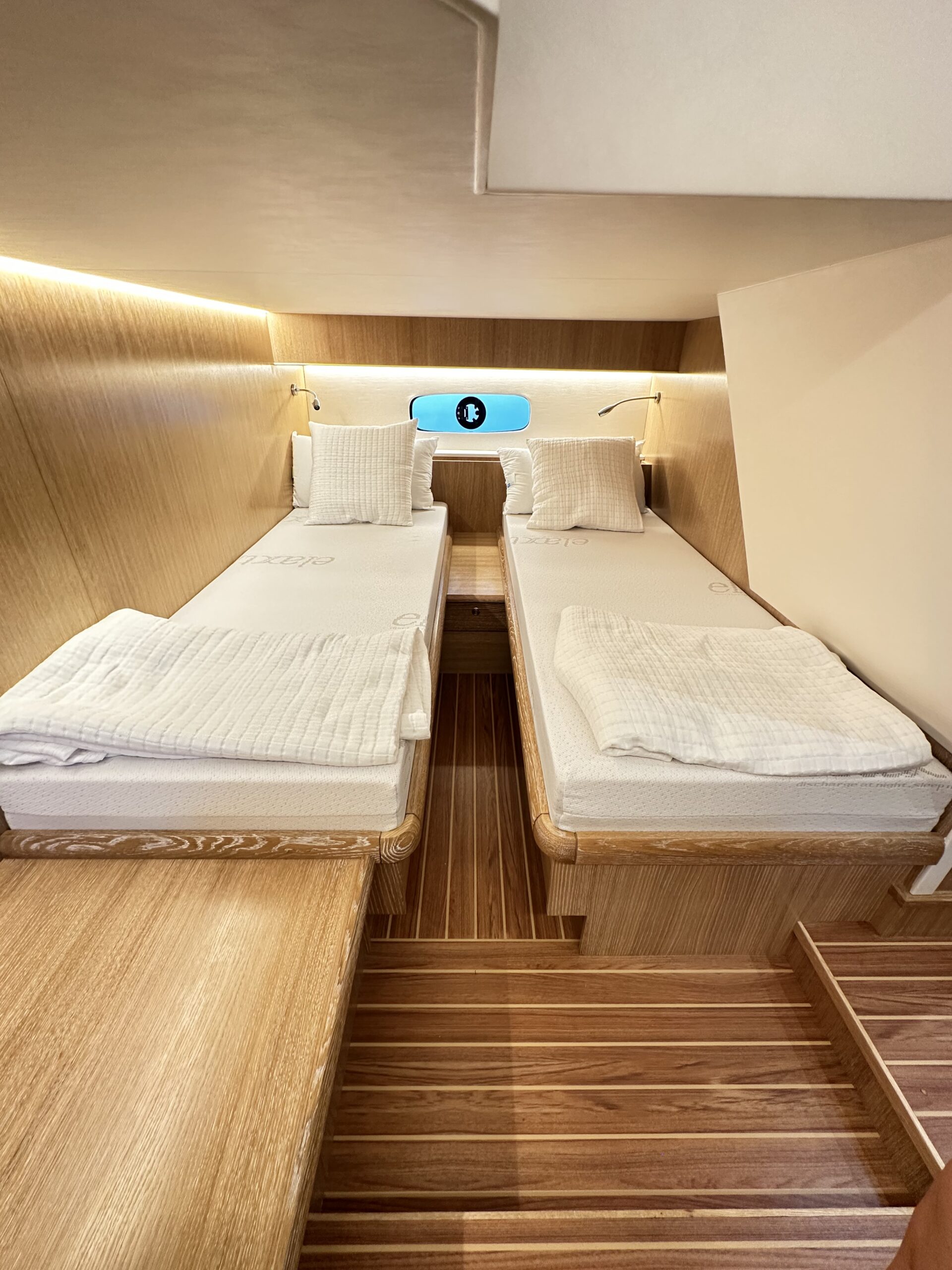 Cuenta con dos cabinas y un baño, ofreciendo una distribución cómoda y funcional para disfrutar del mar con total confort. Todas las revisiones han sido realizadas siempre por el servicio oficial, garantizando un mantenimiento impecable desde su botadura.