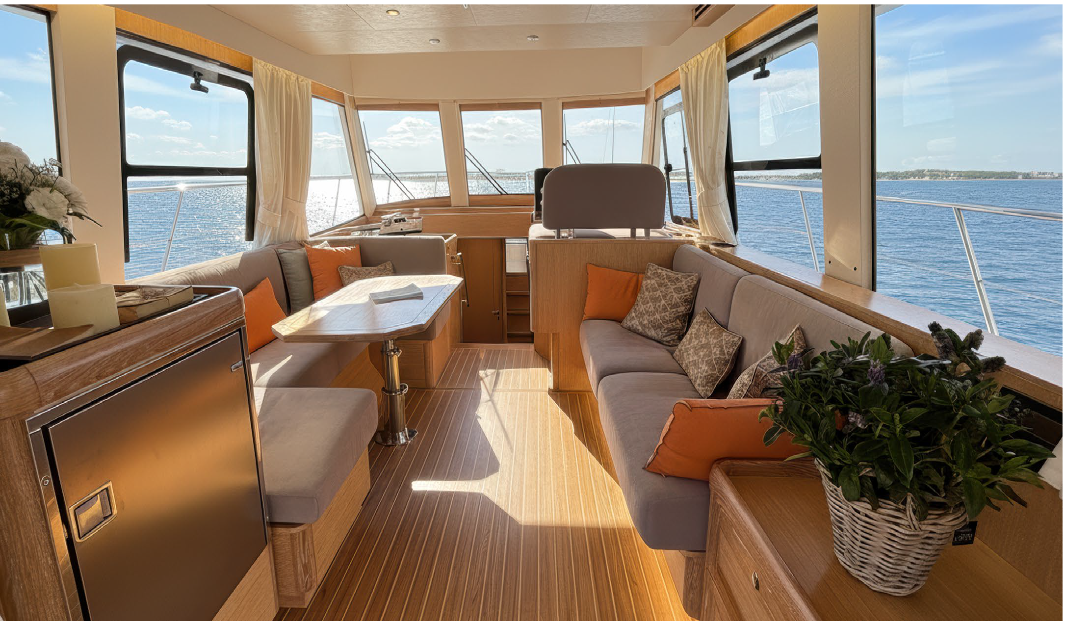 El Menorquín 48 FB nace para llenar un espacio vital en nuestra gama, ofreciendo la solución perfecta para quienes buscan una mayor amplitud y comodidad sin el desafío de amarres más grandes.