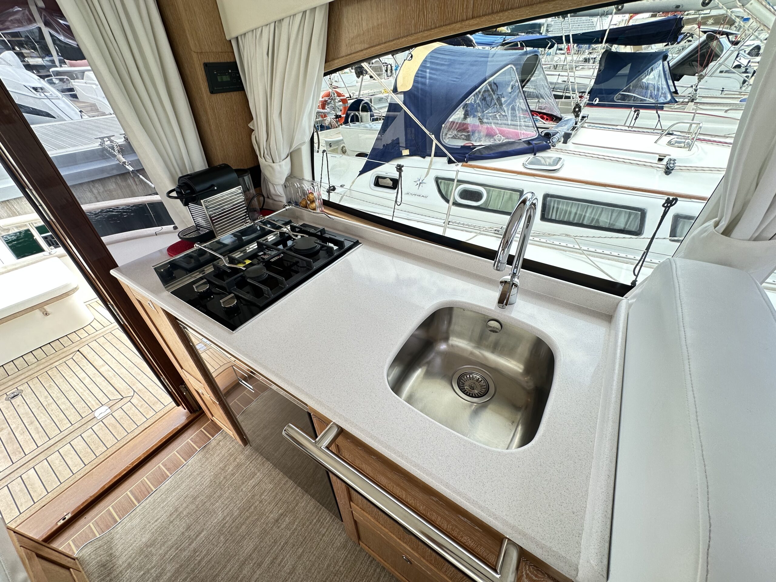 Teakholz im Cockpit und auf der Badeplattform.